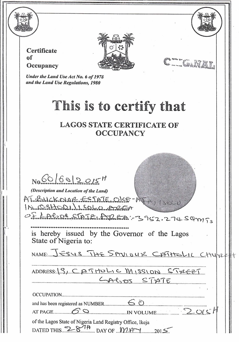 By the Grace of God, Jesus The Saviour Catholic Church Bucknor has legally Acquired The following Properties.